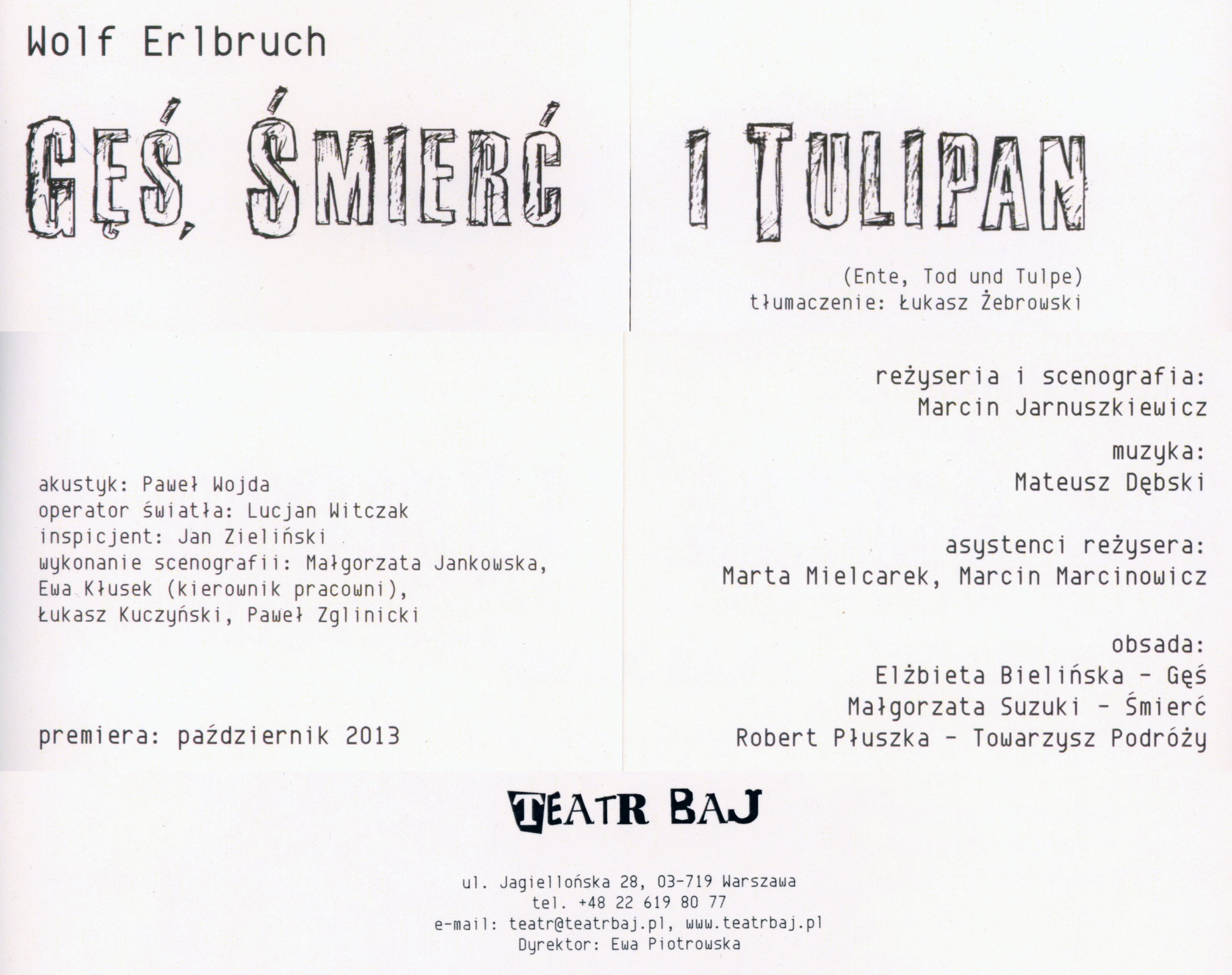 Erlbruch W., Gęś, śmierć i tulipan, Hokus-Pokus, Warszawa 2008.